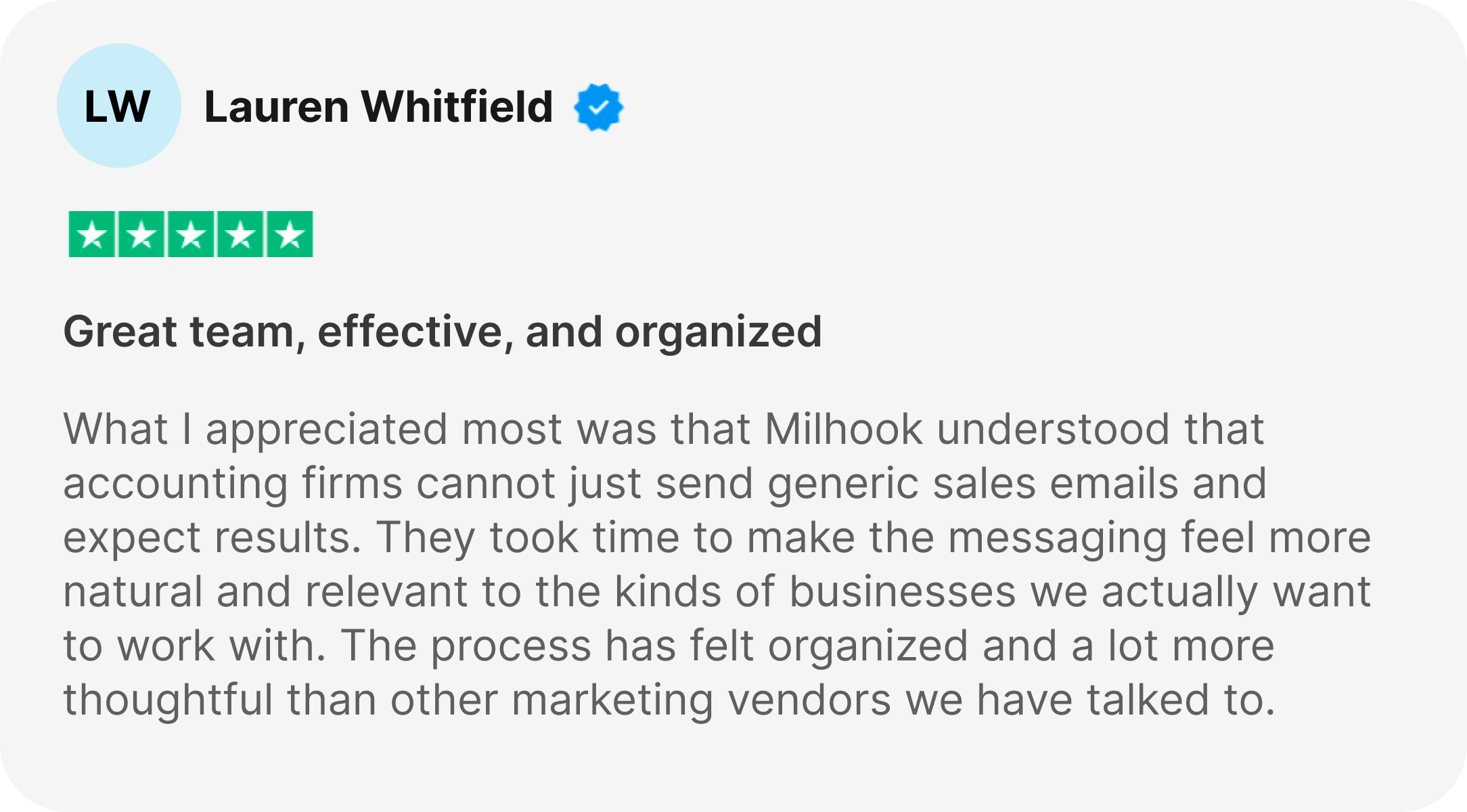 Accounting teams across the country rely on Milhook to fill their calendars with high-value business clients.